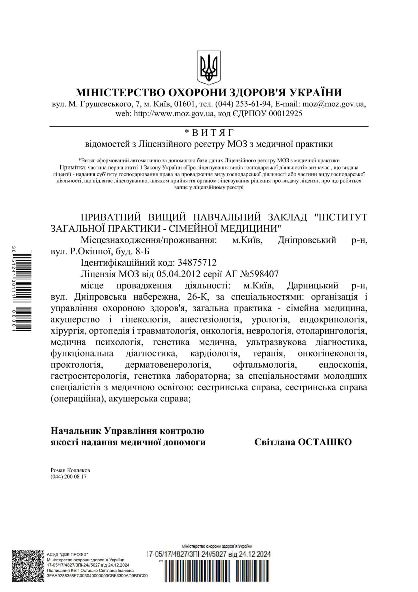 Здесь, в клинике на Осокорках, вы можете получить консультации врачей более чем по 30 необходимым специализациям: