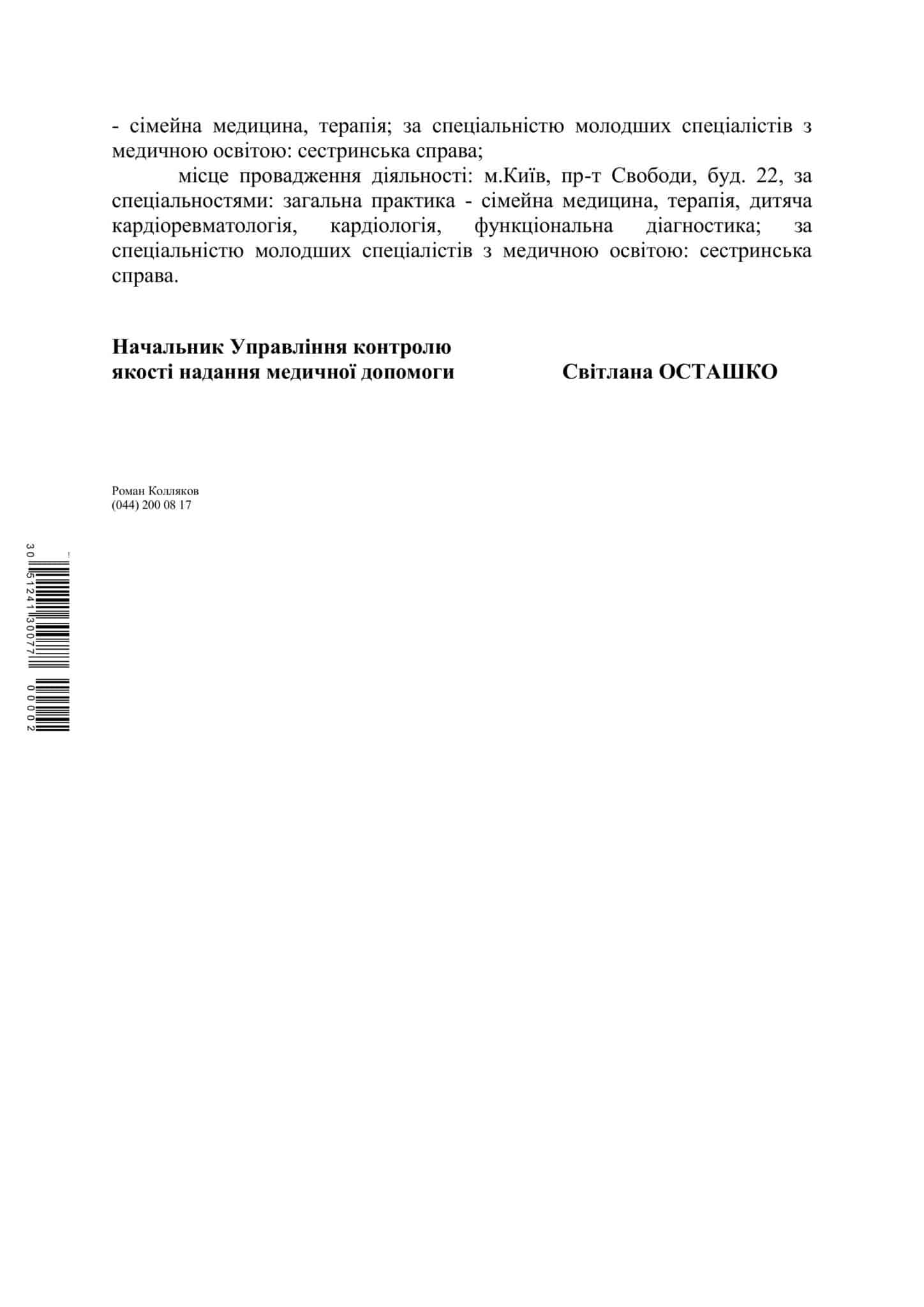 На наступний день лікар Ніколаєва Жанна Валеріївна зателефонувала і поцікавилася моїм станом здоров,я, дала поради. Я почуваю себе добре.